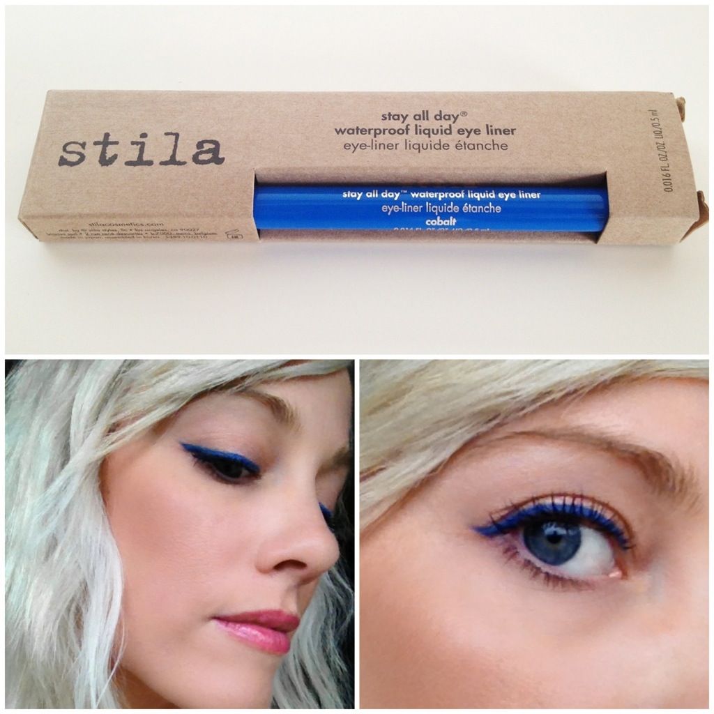 This is Stila’s newest Stay All Day liquid eyeliner. It’s a felt tip liner that is really easy to use and the formula doesn’t run or smudge! It comes in 6 other shades as well. This shade is called “Cobalt” ($21) and you can find it online at Stila.com or at your local Sephora store. You can wear it with fun colorful eyeshadows, you can pair it with a bright red lipstick, or you can wear it with a neutral eyeshadow and let it stand alone as a bright pop of color!