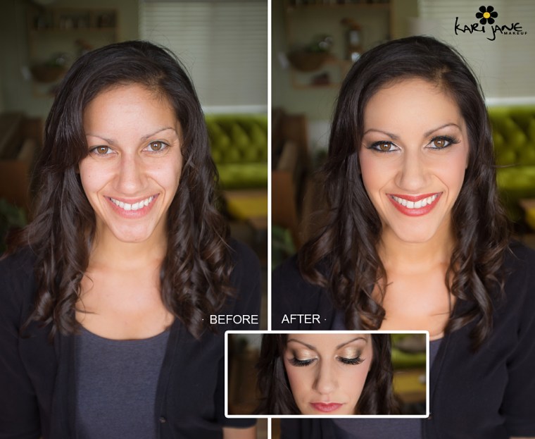 My model Nicole is wearing Temptu Airbrush Foundation and Highlighter, Buxom Lipstick in “Tokyo,” Benefit Blush in “Dallas,” Urban Decay “Naked” Palette, Benefit “They’re Real” Mascara, Stila Stay All Day Liquid Eyeliner in “Intense Black,” Anastasia Brow Powder in “Brunette,” and a black Kohl Eyeliner from Sephora Collection. Temptu products can be found at www.Temptu.com, and the rest of the makeup listed can be found at www.sephora.com.