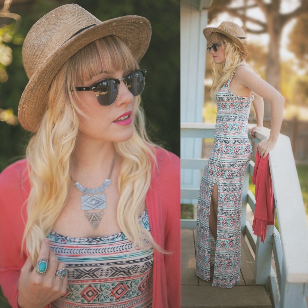 I started a Lookbook account! It will be a place where I post some of my favorite looks or an outfit that I am wearing that day. You can check out my Lookbook profile here: http://lookbook.nu/karijane Today’s post is featuring all Forever 21 products! The long Aztec print dress was $12, the Panama Hat which I customized was $14, the coral cardigan was $17, the sunglasses were $5, and the jewelry all together was $16. Outfit total: $59 🙂 Go and check out my profile and the looks I have posted so far and tell me what you think!