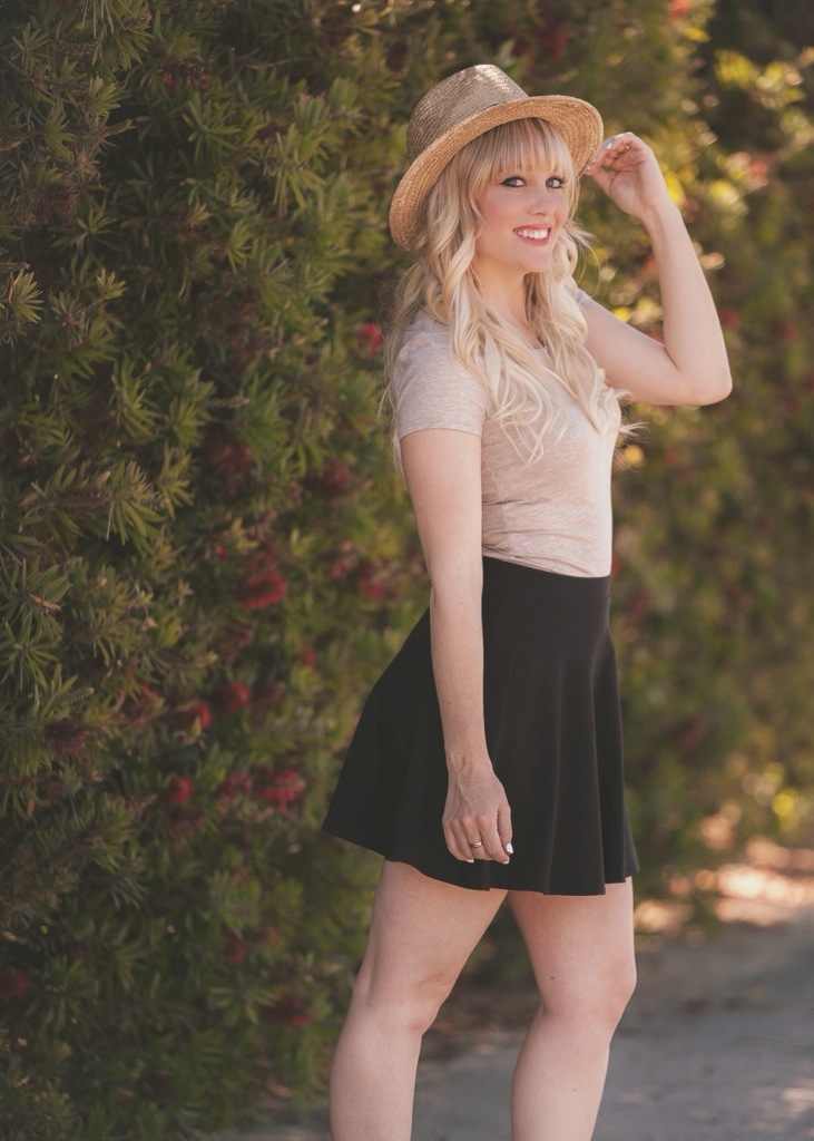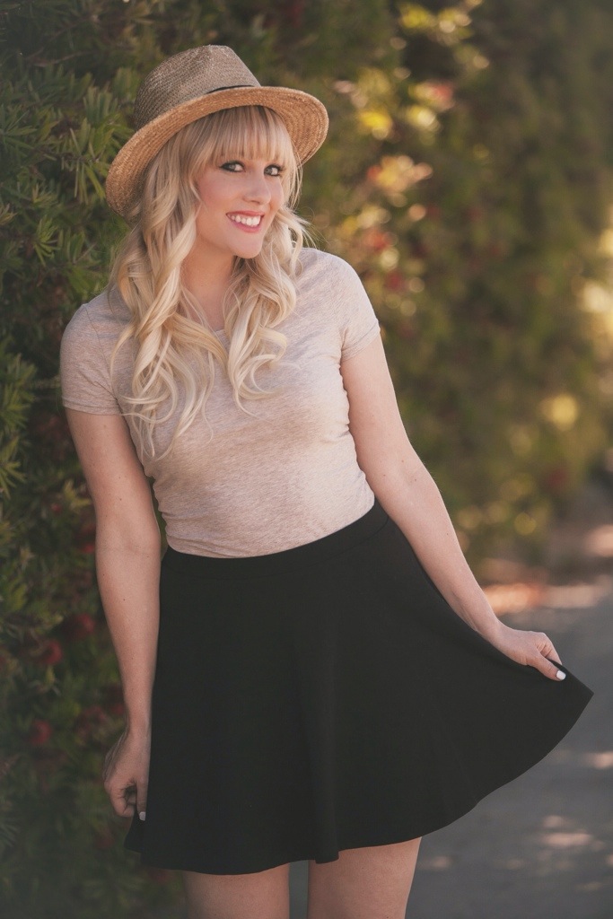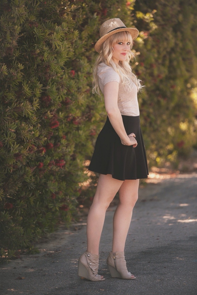 This look is featuring some great basics from Forever 21 and some wedges from Vince Camuto. I recently cleaned out my closet and found some hidden gems that I have had for awhile, but totally forgot about. The first is this black cotton skirt ($5) from Forever 21. I love how versatile this skirt can be and how simple it is. You can dress it up or down and there are so many options for tops that can be paired with it. I decided to go for a more plain and basic look and wear it with a beige top ($5). Sometimes less is more :). Forever 21 has a great selection of basic and solid colored shirts to choose from. They also have a great selection of straw hats. This one I am wearing is the Panama style hat ($14) and I customized it by adding feathers and dying it a slightly darker color tan. This simple summer look (not including shoes) was under $25! Gotta love Forever 21!