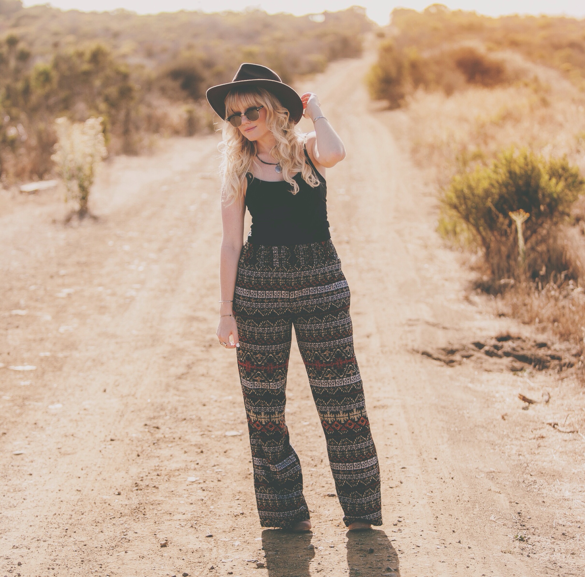 This look is featuring some new pants I just got from Styles For Less. I love the print and fabric of them and they are super comfortable to wear. I think these pants are a perfect transition into fall piece to add to any wardrobe because they are so lightweight and can be worn on a hot, breezy, or cool day depending on what you pair them with. I decided to keep my look simple with a Forever 21 black tank top, my $5 sunnies, and one of my favorite brown hats. You can find these pants and many other prints and styles like this at http://www.stylesforless.com. Have a beautiful day everyone!