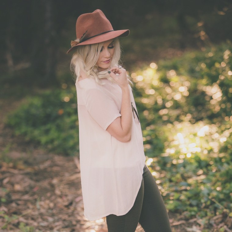 I’m pretty excited for this Fall! We have a lot of fun travel plans in store and I can’t wait to share some upcoming adventures with you all. Triple Thread sent me a few cute tops recently and this beige one I’m wearing is my favorite one that I received. Triple Thread is an online clothing company based in California and they have a lot of unique and beautiful pieces in their shop. They do a lot of giveaways so make sure you follow them on their Instagram as well @triplethreadoc. I styled my flowy beige top with some old green Forever21 jeans, my thrifted boots, my favorite customized brown hat, and this adorable key and feather necklace that my husband made for me for my birthday a couple years ago. Have a beautiful day everyone and know that you are fearfully and wonderfully made!
