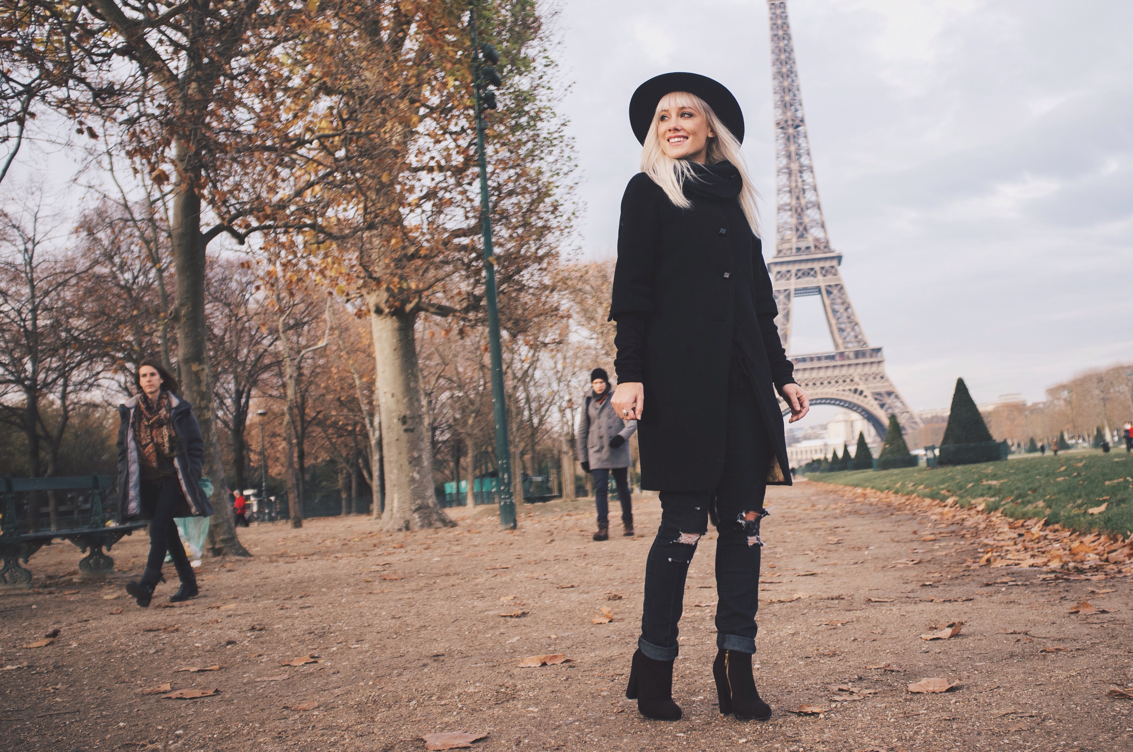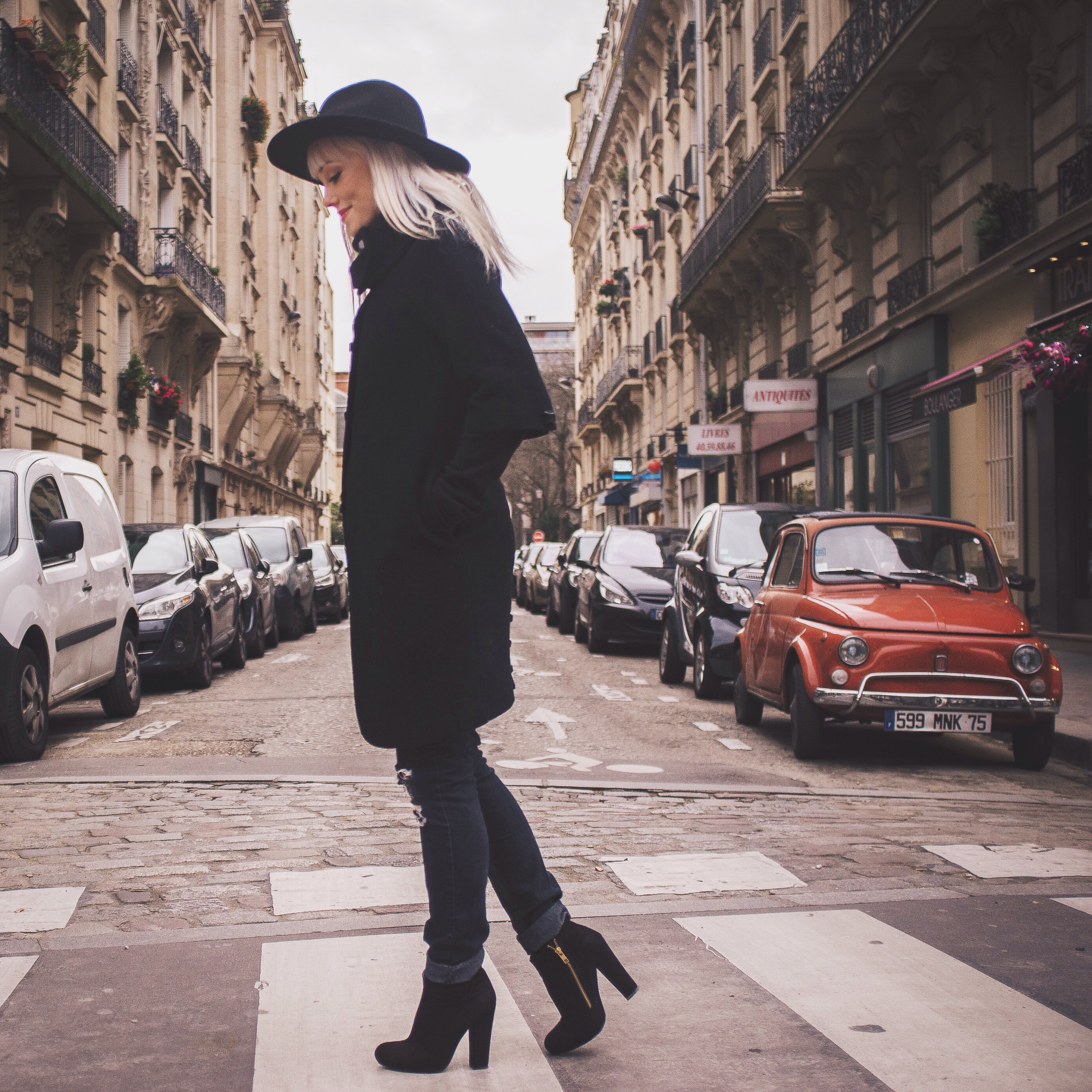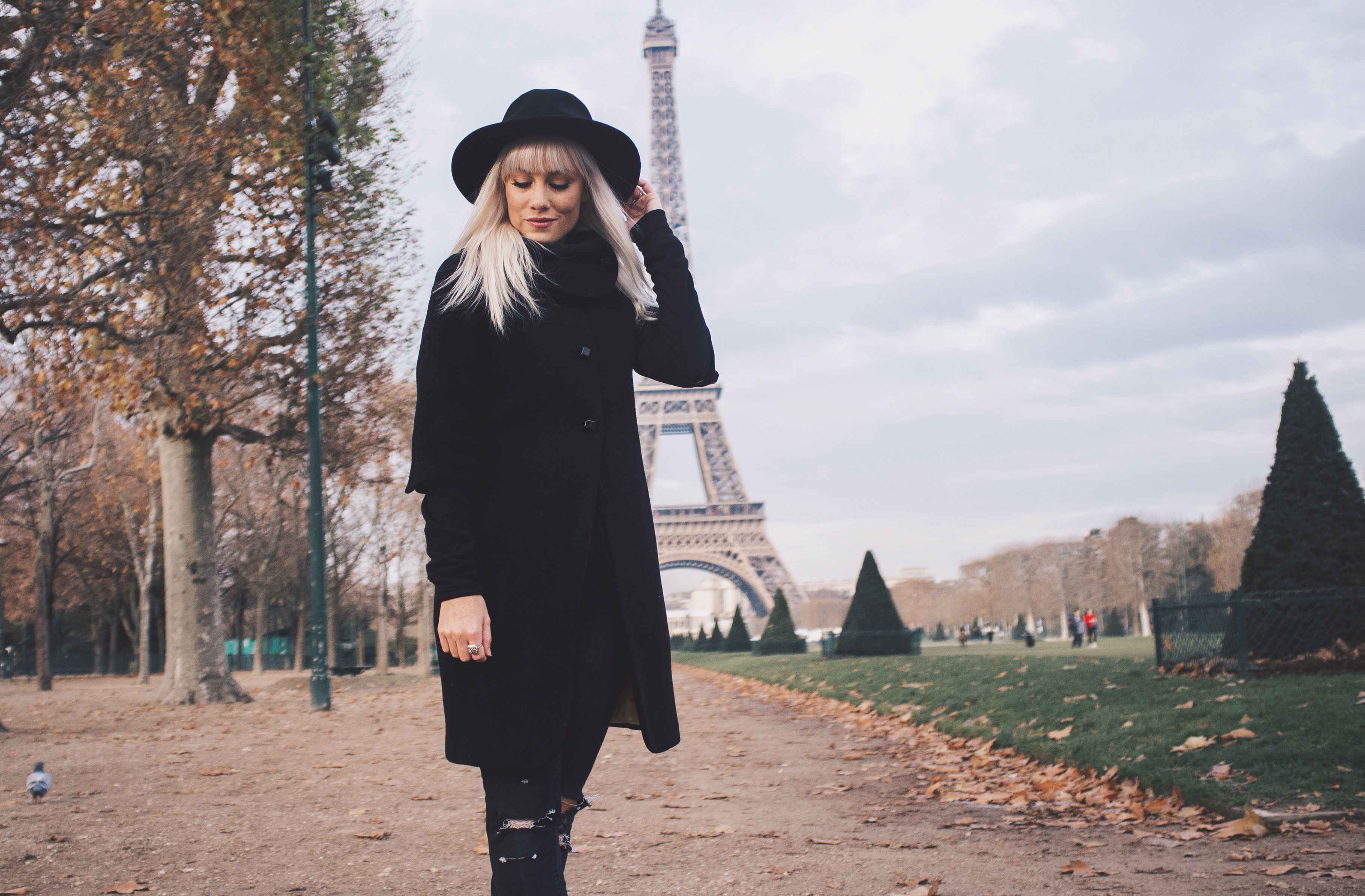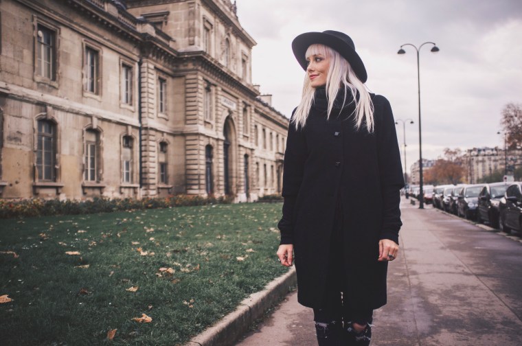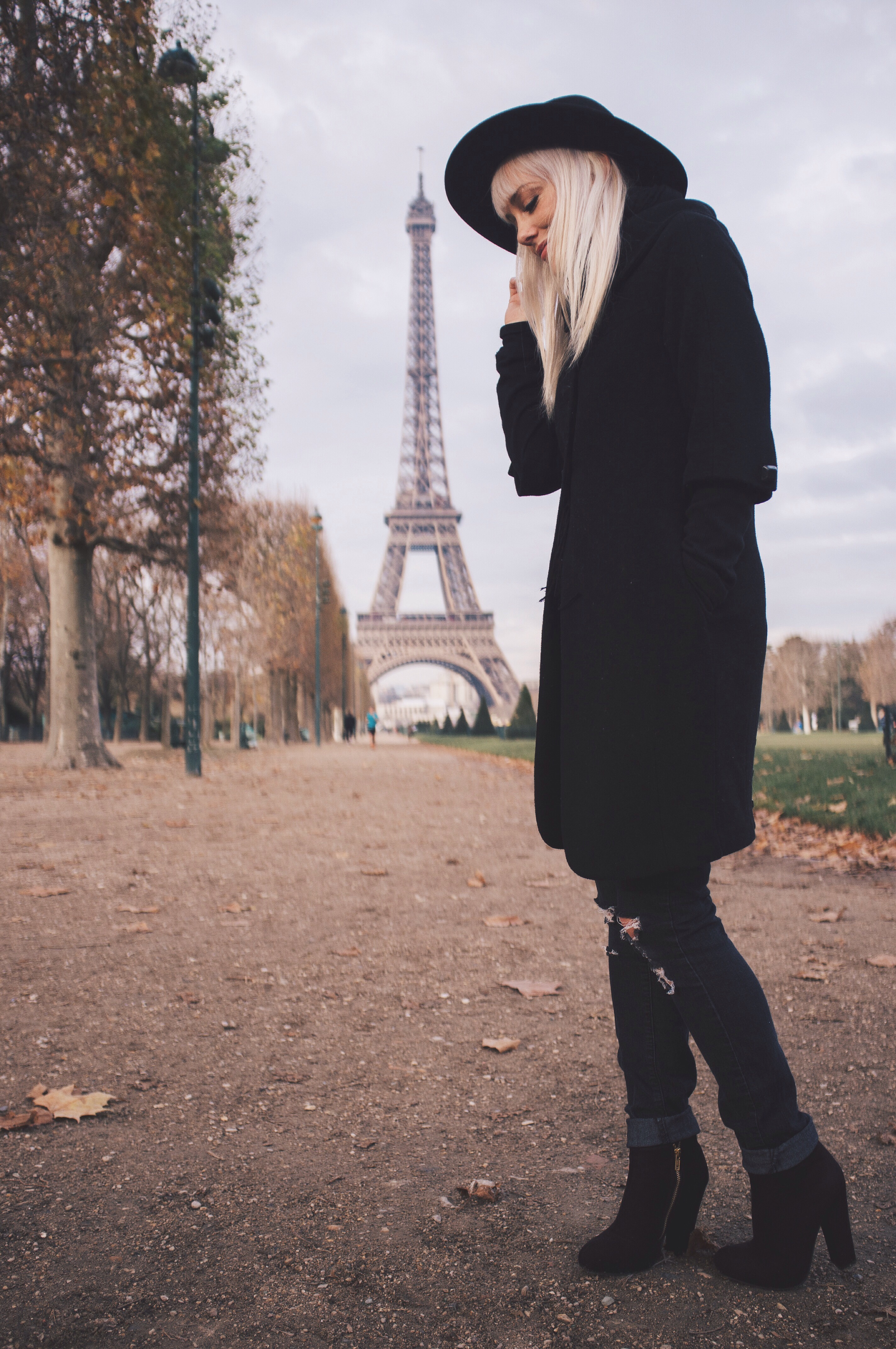 Being able to go back to Paris was such a joy! Dan and I took a trip to France last month and got to re-visit all the places we did 8 years ago. It’s still just as beautiful, just as captivating, and just as romantic.  We visited other cities in France but we spent the most time in Paris. We were gone a total of 15 days, so we really got to enjoy everything and take our time everywhere we went.  Our favorite place in Paris is still the Rue Cler, a charming market street near the Eiffel Tower. It was of course, extremely chilly while we were there, so underneath my three-quarter length wool coat that Dan gave me several years ago for Christmas, I wore two long sleeved thermals and a warm black scarf. I love all the cute button details on the back of the coat, the sleeves, and on the scarf-like collar of the coat. For this outfit I wanted to feel really Parisienne 😉 so I decided to go all black and wear my thrifted boots, old ripped Forever 21 jeans, and old hat from H&M.  I hope everyone is having a great start to the new year! 2016 is going to be pretty incredible and I’m so excited!