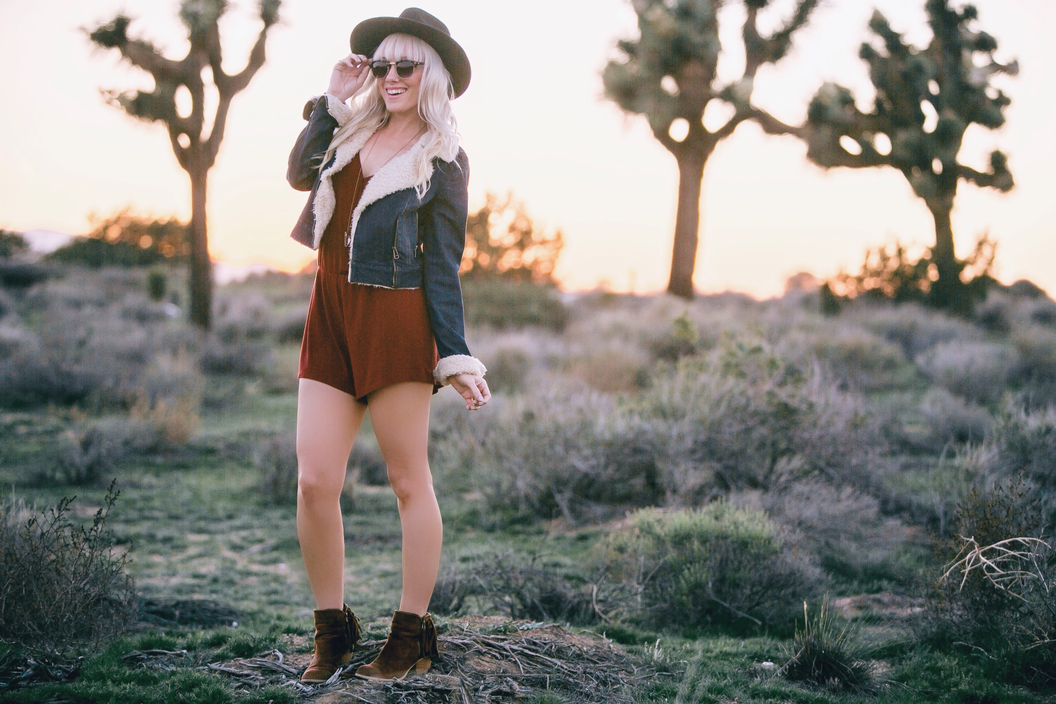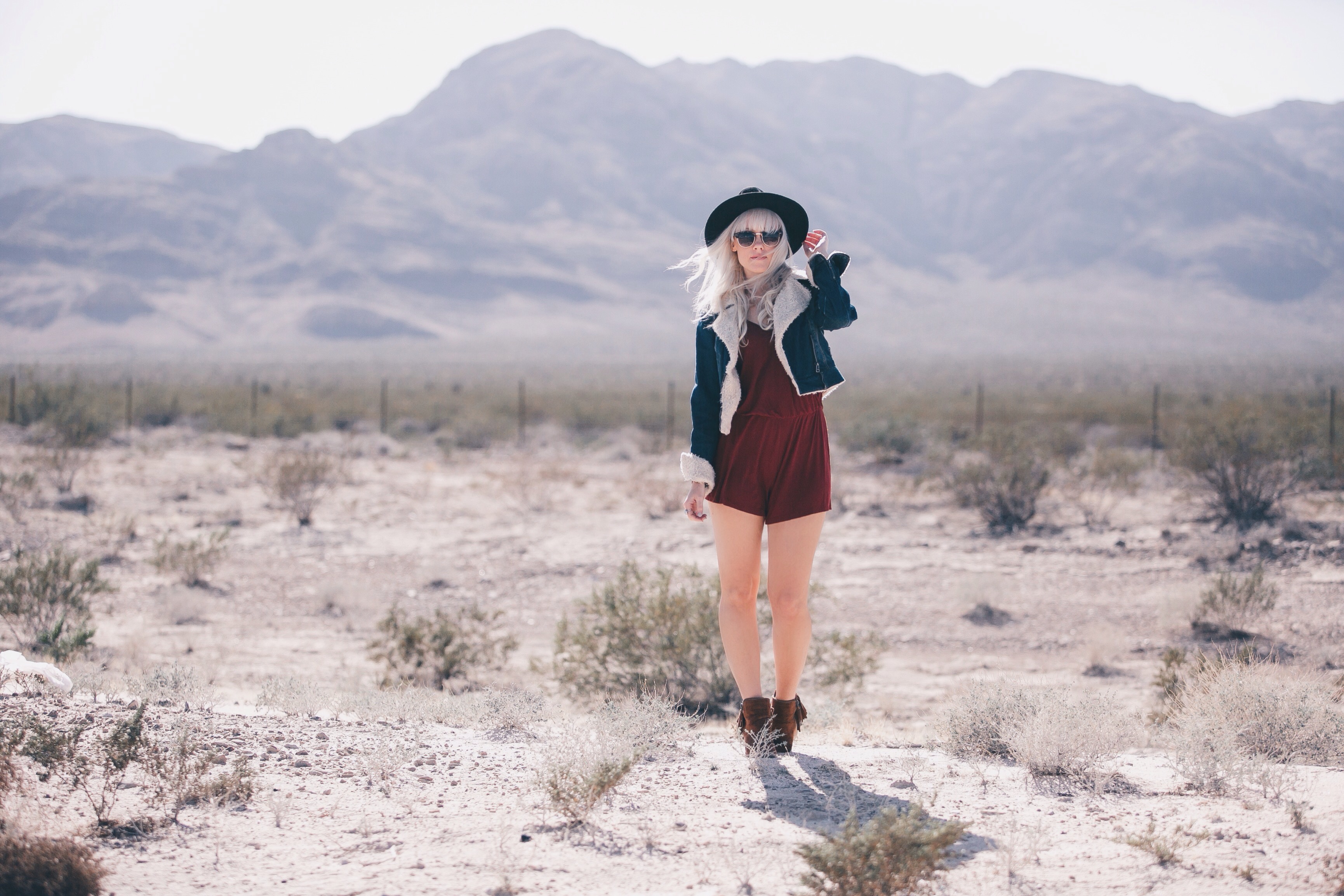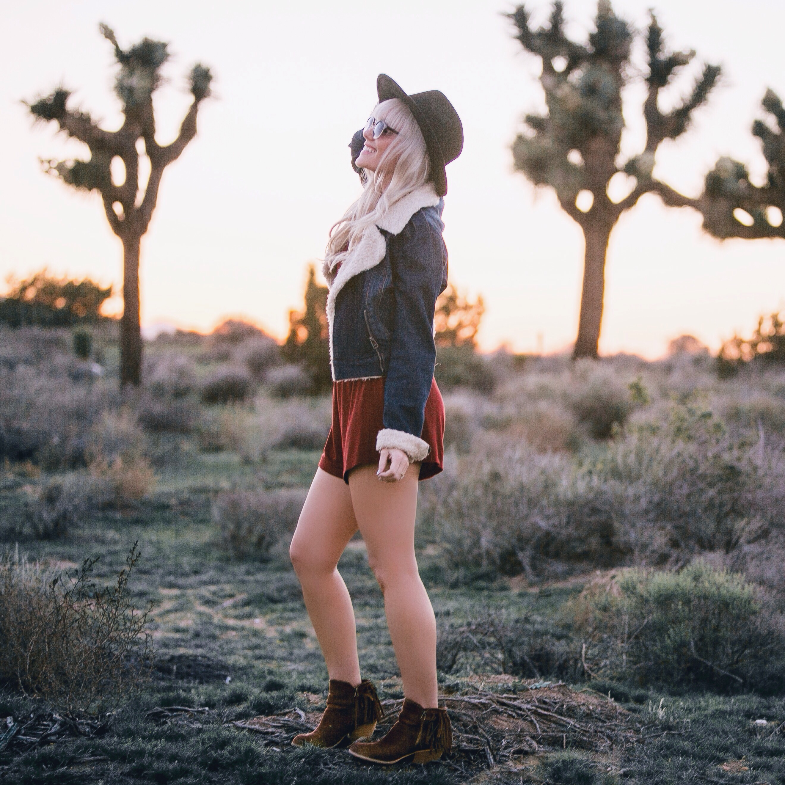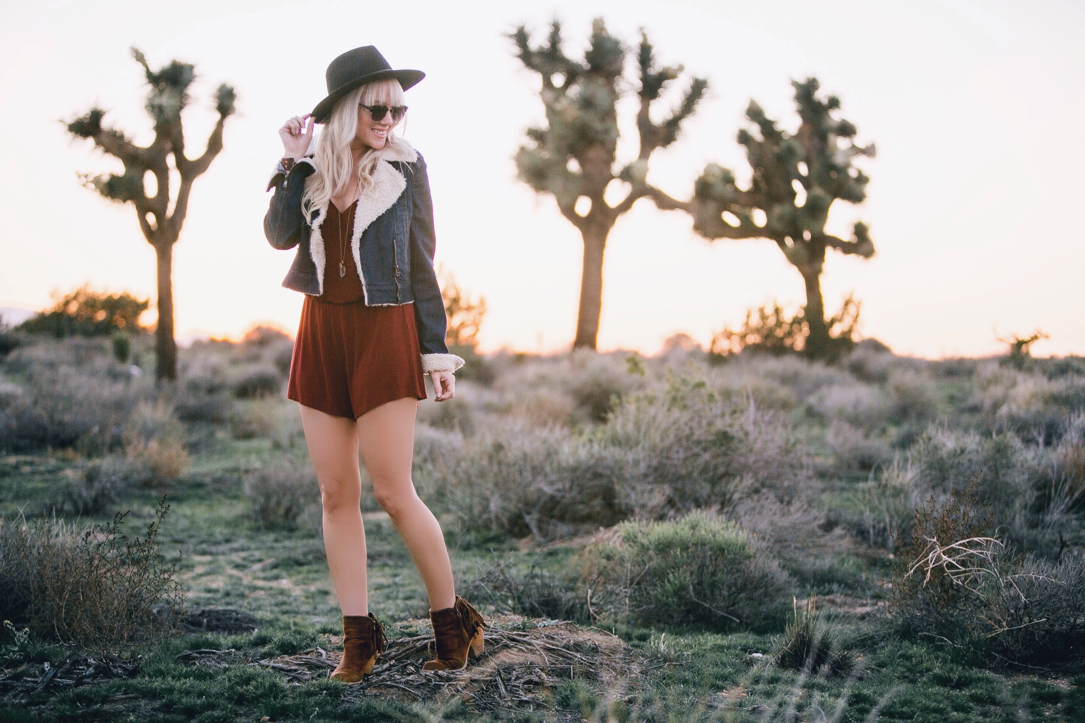 Our trip to the desert in our new trailer was such an adventure! I love living on the coast but sometimes it’s nice to have a change of environment. Today’s fashion post is featuring pieces I’ve had in my closet for some time now, but I’ve been disciplining myself to use the clothes I have and not fill my closet up with more fabric that a lot of times ends up just sitting there. It’s been hard but it’s also been fun seeing what lost pieces I can put together to make an outfit. My hat, romper, jacket and glasses are all from Forever 21. My crystal necklace is made by Tiana with Pueblo Street Jewelry Co, my native bracelet is made by me at Kari Jane Co, and my fringe boots are from Not Rated Footwear. If you find some shoes you like there, you can use code “Kari Jane” to receive 20% off your purchase. I hope everyone had a fabulous Easter with your families!