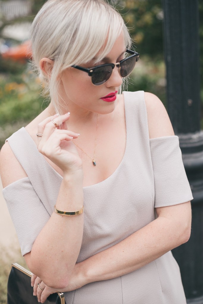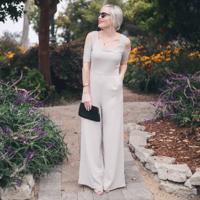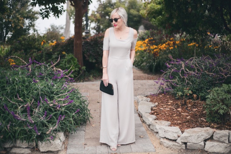 Today’s outfit post is featuring this beautiful gray jumpsuit from WalG London. I came across their Instagram page @walglondon and fell in love with their collection. I had my eye on a couple of their jumpsuits and was so excited that they sent me this one! WalG London is based in London, England but they do have an online shop. Their shop has a good mix of casual to sophisticated looks and I love how how each piece has an effortless elegance to it. I styled my jumpsuit with a gold Baublebar bracelet, some dainty midi rings, my Eyebuydirect sunnies, my new Pueblo Street Jewelry necklace, some gray Vince Camuto wedges, and my vintage Hobo clutch that my sweetie got me several years back. I think this would be the perfect outfit for a wedding, special event, or even a fancy date night 🙂