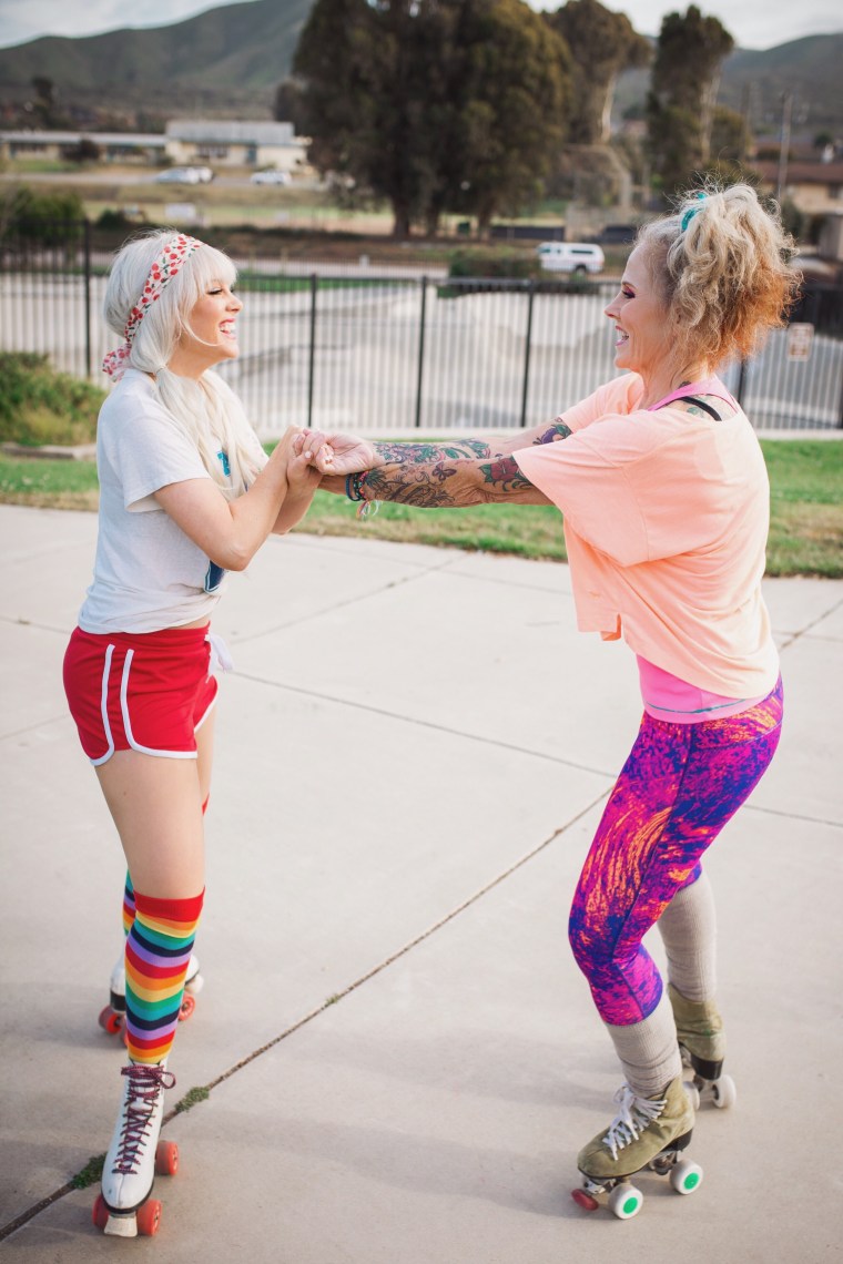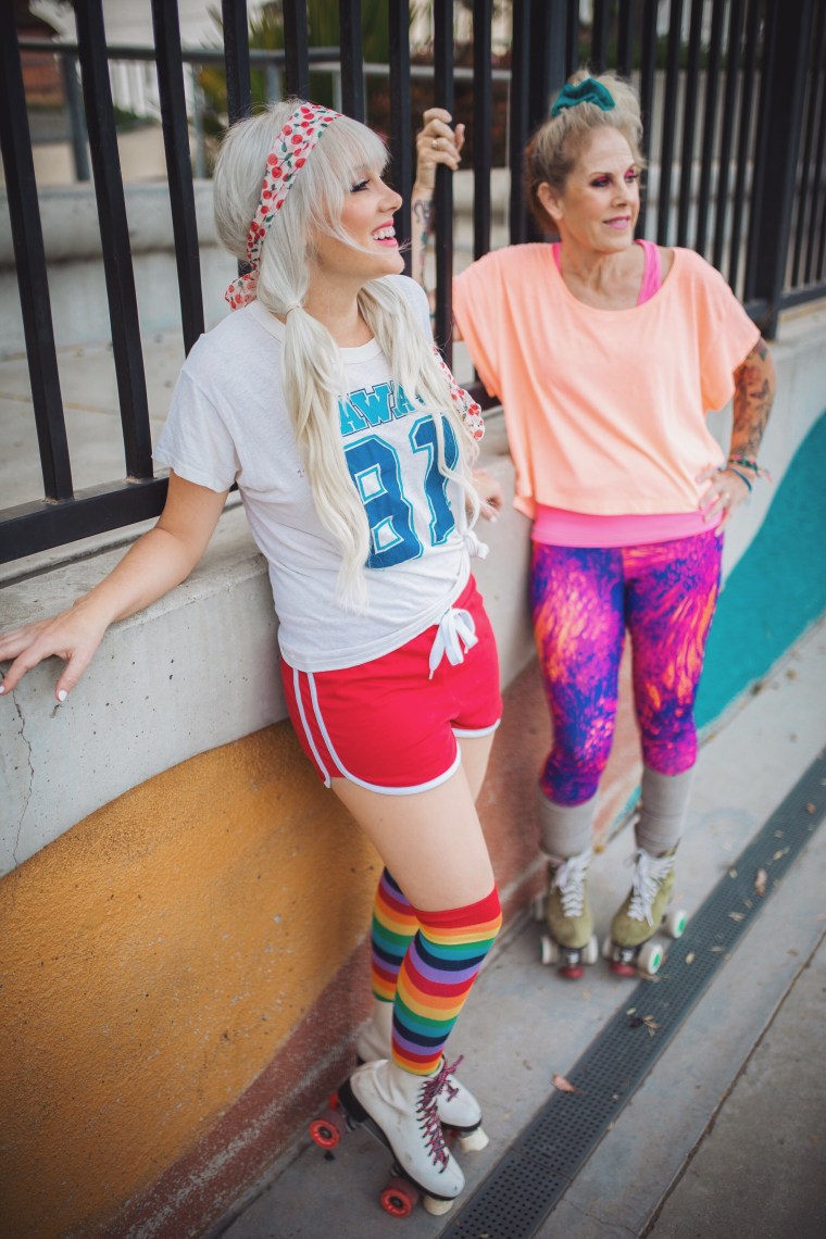 My Momma, Rockyn Robyn has been roller skating her whole life and still is to this day. She’s on a roller derby team and still competes at the age of 56! The picture of her jumping above was in the same green skates in 1980, back when she was dating my dad. How cute are my parents? 😆 We thought it would be fun to pull out her old vintage green skates and my sister’s old pair and do a fun shoot together. A little while ago she gave me some of her old shirts, one of which was this cute Hawaii shirt from their honeymoon. We’ve been having such a blast skating together! This last year we’ve been roller skating once a week and she’s been showing me all her amazing skills. It’s been so rad getting to spend so much time together. My mom is my hero and my best friend and being around her makes my heart so happy. I’m so blessed to have been surrounded by so much love from her my whole life. Happy Mother’s Day Momma! You make my life so much brighter. Can’t wait to celebrate with you this weekend!