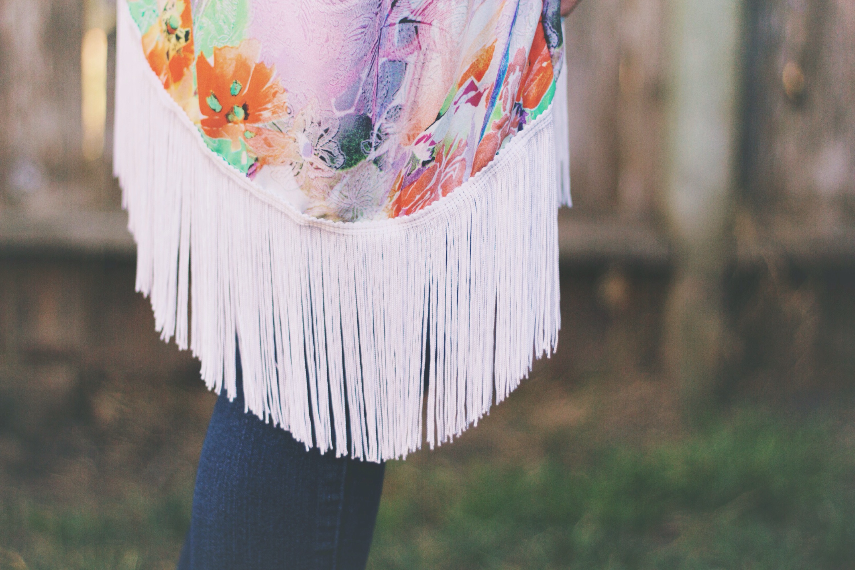 Kimonos have definitely been a favorite of mine the last couple years. I recently got my sewing machine fixed and felt inspired to make my own Kimono! Dan and I are planning on going to Hawaii this year and I thought it would be fun to make a colorful Hawaiian inspired Kimono. I will be adding the Aloha Kimono to my etsy shop soon, but just wanted to share the first one I made with everyone! I took inspiration from the fit and design of each of my favorite kimonos in my closet and came up with my own design. I wanted it to be long, oversized, very light, flowy, and with fringe. This kimono will be perfect for Hawaii! I will be on the hunt for other fabrics and colors and will be adding a selection to my etsy shop soon. Can’t wait!