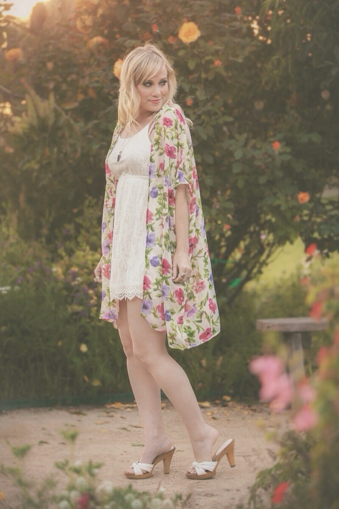 This look is featuring one of my favorite dresses by H&M and my “Blush Floral Kimono” from OOTDFASH. I love how simple and elegant this look is. Each one of these pieces can be dressed up or down and can be worn in many different ways. This white H&M dress looks adorable on it’s own, but adding the kimono was the perfect touch. I was super excited about getting this floral kimono in the mail! I usually blog about more casual looks but I just felt like getting dressed up 🙂 I’m also wearing a long silver necklace and some silver rings from my husband. Check out OOTDFASH’s website at http://www.ootdfash.com and follow their Instagram page @ootd.fash for some adorable summer clothes and daily fashion inspiration.