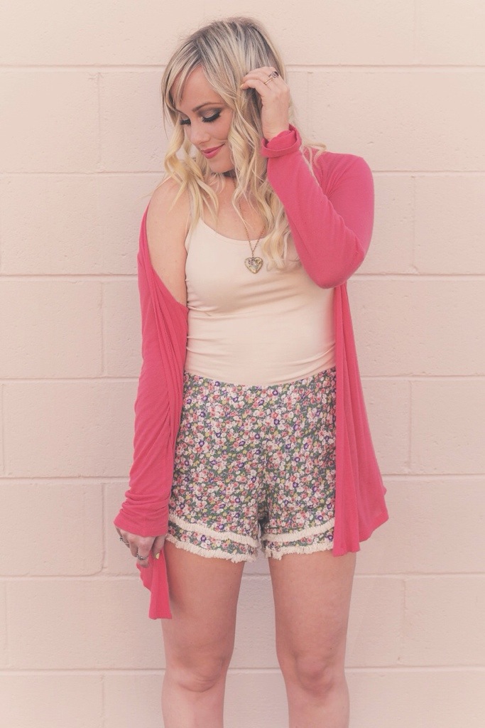 This look of the day is featuring one of my favorite online boutiques “Vinnie Louise.” I recently found her online shop while on Instagram. She has amazing clothes and accessories for great prices! She sent me some amazing floral shorts that I absolutely love! The “Floral For Days” shorts are super lightweight, comfortable, loose fitted shorts perfect for summer.
